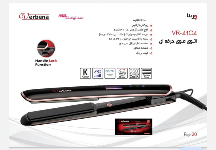 اتو مو حرفه ای وربنا مدل vr4104 .روکش کراتین .حرارت 170تا230