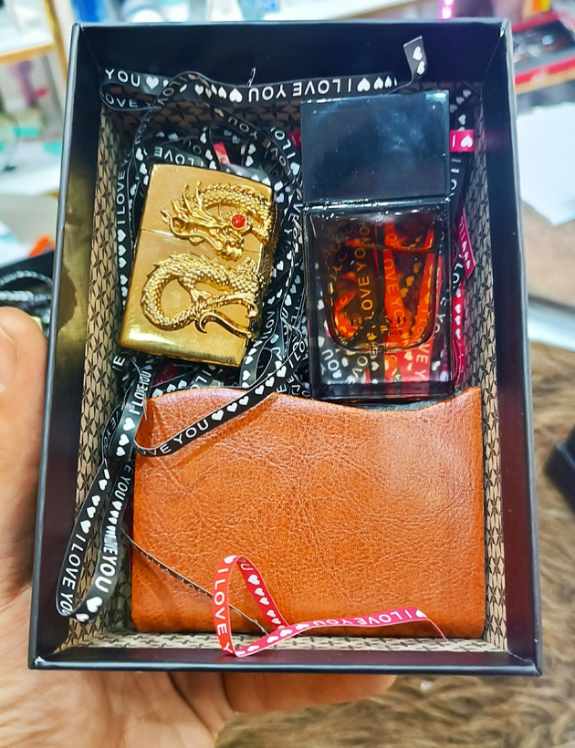 پک هدیه مردانه شامل ادکلن دیور هوم فندک اژدها کیف مگنتی مدارک